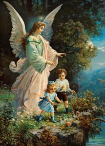 1 kpl Postikortti, Perinteinen suojelusenkeli ja lapset jyrkänteellä.