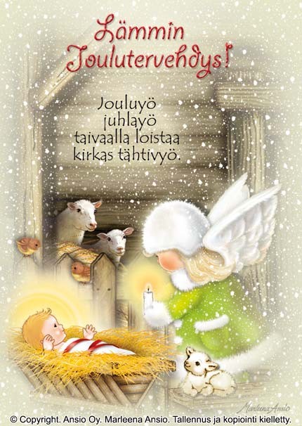 Joulukortti: Enkeli ja seimi (Marleena Ansio)