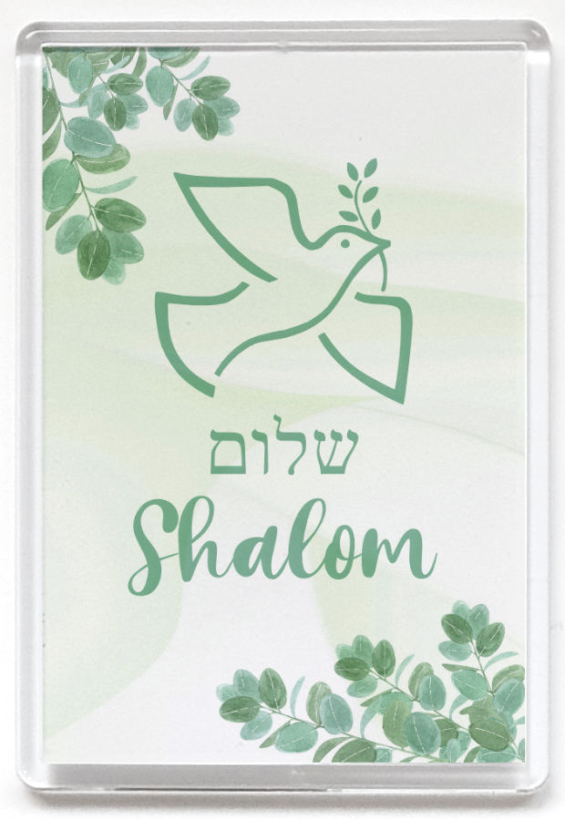 Magneetti tekstillä: Shalom (hebreaksi ja suomeksi)