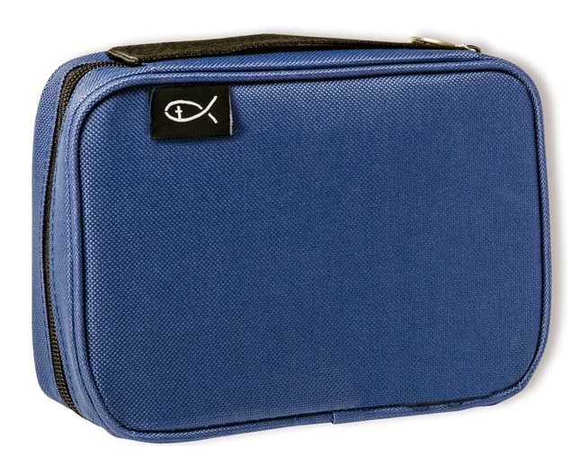 Raamattulaukku, sininen, vetoketju. Kangasta.