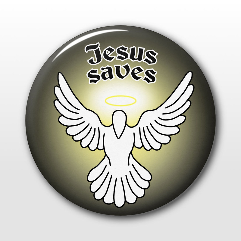 Rintamerkki kyyhkysen kuvalla ja Jesus saves – tekstillä